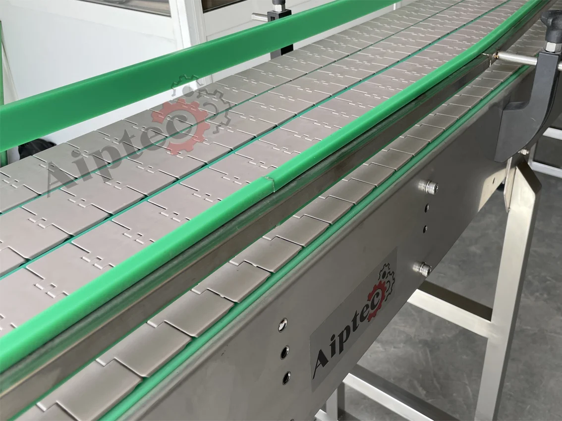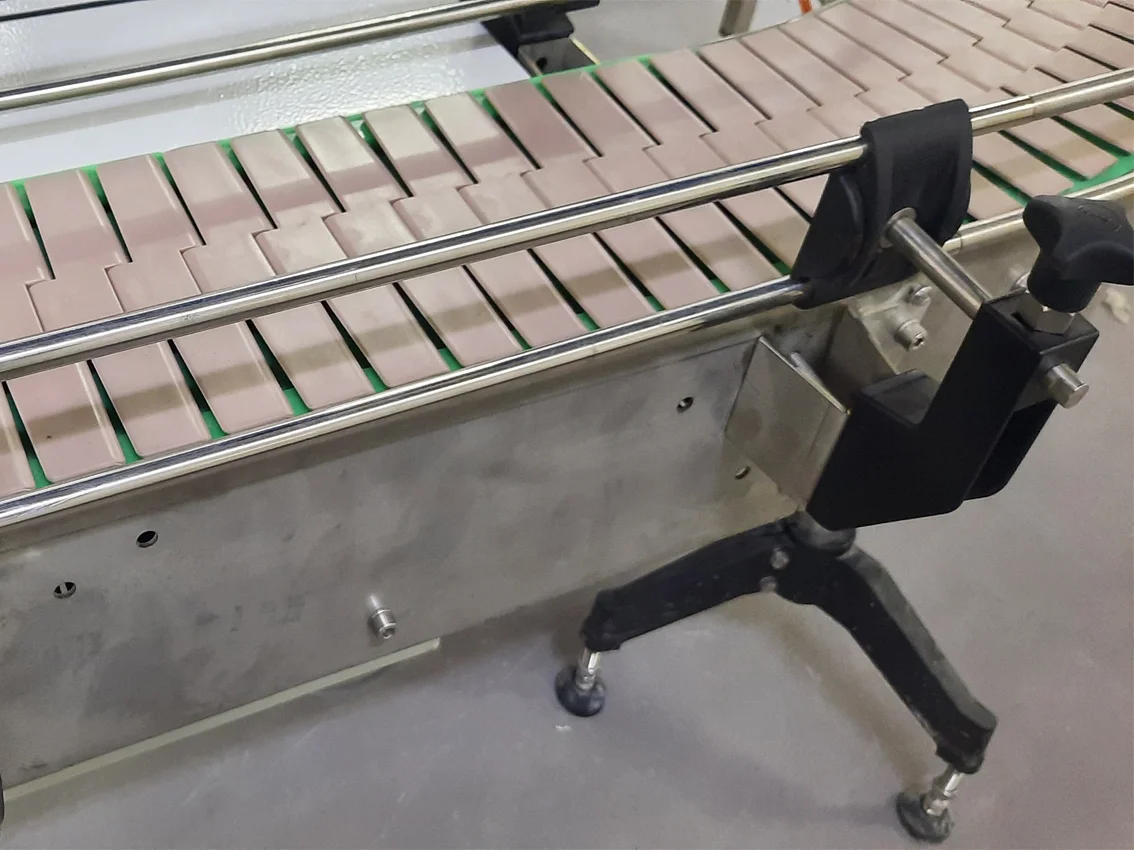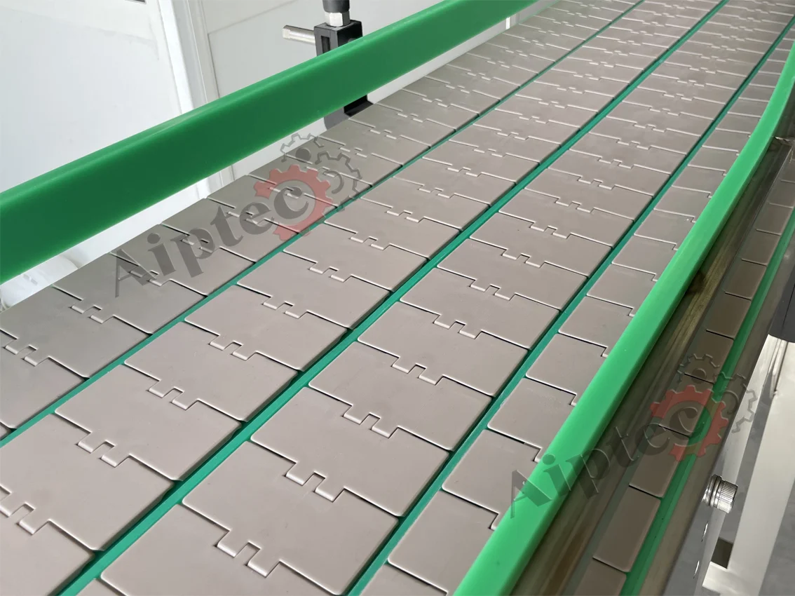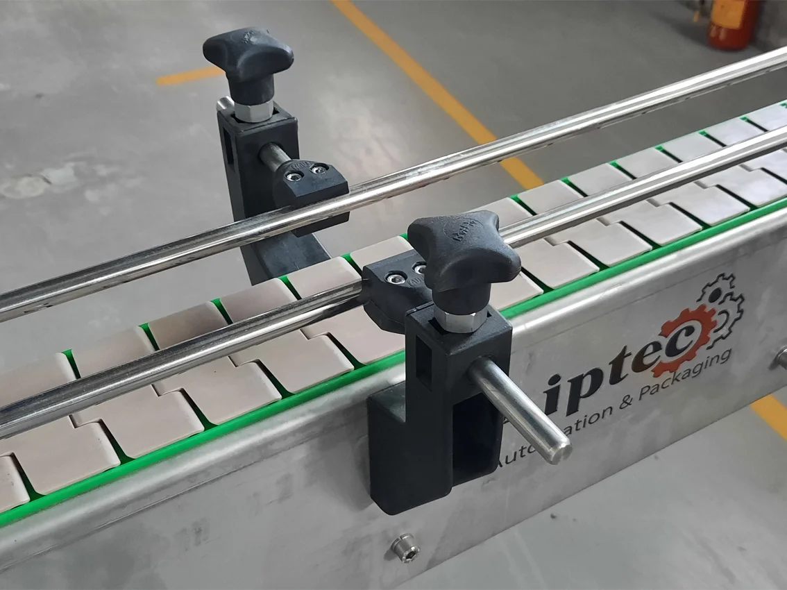 Le convoyeur à chaîne à palettes en configuration multivoies est une solution intensive et modulable, fabriqué au Maroc par AIPTEC, leader marocain de la conception et fabrication de convoyeurs industriels. Parfaitement adapté aux bouteilles, bidons, boîtes métalliques, flacons, cartons ou packs divers, il est spécialement conçu pour les solutions d’accumulation sur les lignes de bottelage haut débit. Il assure l’alignement parfait des produits avant ou après les machines critiques, même à très grande vitesse et cadence élevée. Idéalement positionné en sortie de soutireuse (remplisseuse) pour absorber les pics de production, à l’entrée des étiqueteuses pour garantir un flux régulier et centré, ou devant les fardeleuses pour constituer des lots alignés prêts au sur-emballage. Disponible en 2, 3, 4 voies ou plus, chaque voie peut fonctionner à sa propre vitesse, gérer ses propres arrêts sélectifs ou accumulations sans interférence avec les voies adjacentes. En éliminant les goulets d’étranglement et les files d’attente, cette fabrication marocaine optimise le rendement global de vos lignes dans les environnements exigeants : agroalimentaire (brasseries, laiteries, eaux minérales), pharmaceutique, cosmétique, chimique ou pétrolier. Robuste, silencieux, facile d’entretien et compatible avec les nettoyages fréquents (haute pression, vapeur, produits chimiques), entièrement conçu et assemblé au Maroc par AIPTEC, il représente la solution idéale pour démultiplier votre productivité sur un seul convoyeur.