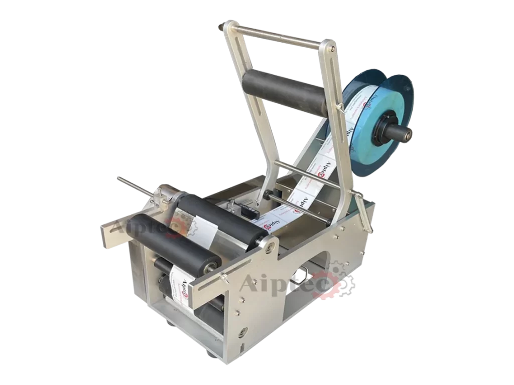 L’étiqueteuse semi-automatique pour produits cylindriques est une solution simple et efficace, idéale pour l’étiquetage en wrap-around (tour de produit) des bouteilles, flacons, tubes et pots. L’opérateur place manuellement le produit sur les rouleaux d’entraînement, déclenche le cycle par bras d’appuis, et l’étiquette est déroulée puis appliquée automatiquement par rotation du produit, garantissant une précision d’étiquetage d’environ ± 1 mm. La machine étiqueteuse accepte une large gamme de diamètres, généralement de 25 mm à 150 mm, ainsi que des étiquettes jusqu’à 150 mm de hauteur, avec des bobines pouvant atteindre 240 mm de diamètre extérieur. Elle se distingue par sa facilité de réglage, son faible encombrement et son coût maîtrisé, bien inférieur à celui d’une machine entièrement automatique. Elle convient parfaitement aux petites et moyennes séries, ainsi qu’aux ateliers nécessitant des changements de format fréquents, où la flexibilité et la simplicité d’utilisation sont privilégiées.